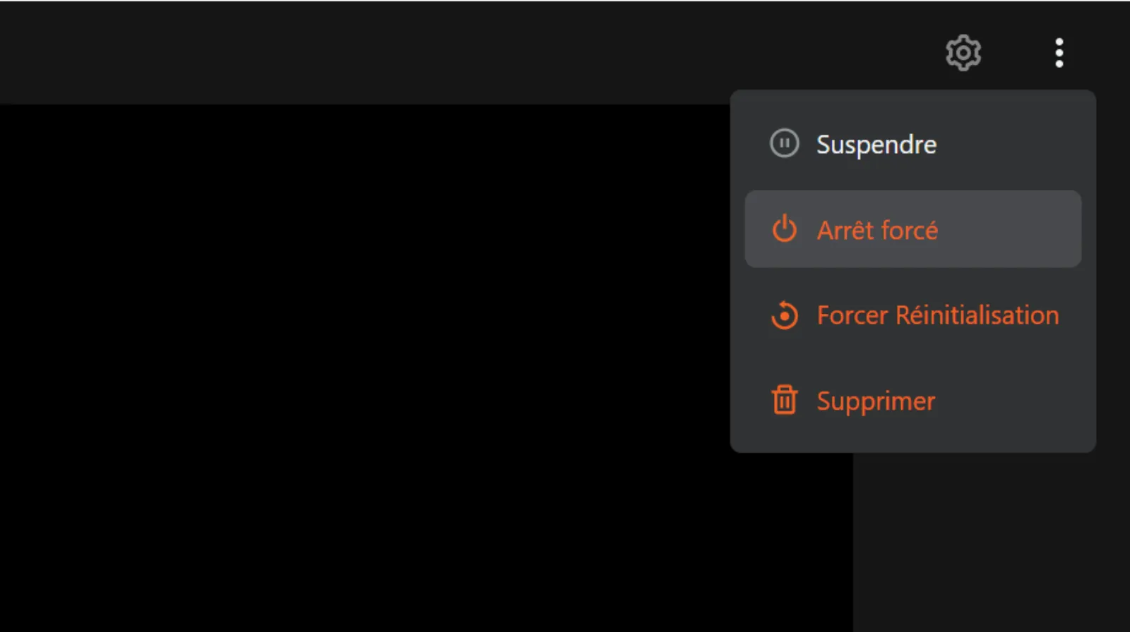 2.1. Arrêtez la VM en cliquant sur les 3 points en haut à gauche de la page – Arrêt forcé