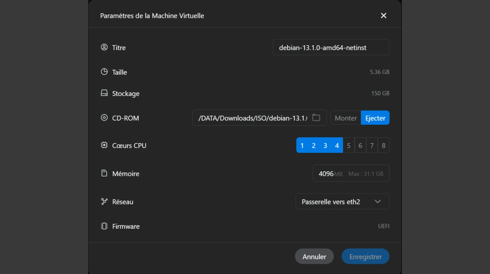 Création de la VM