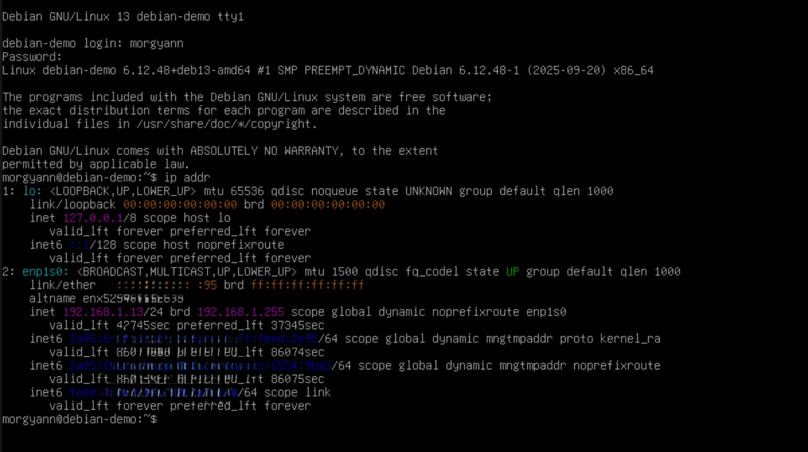 Pour une VM sans interface graphique, comme Debian, indiquez votre login + mot de passe – ce dernier ne s’affiche pas, vous tapez à l’aveugle.