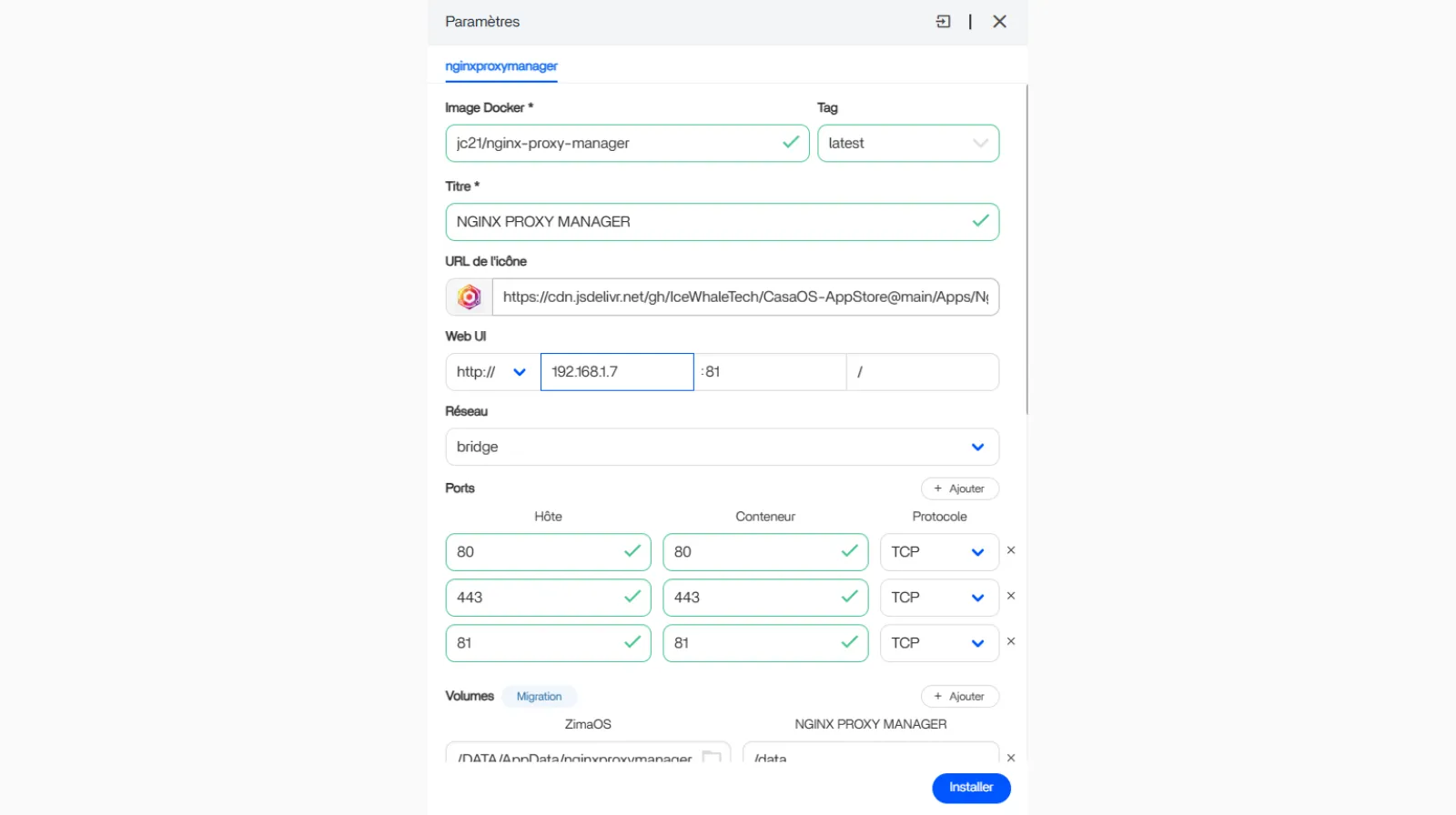 Avant de procéder à l'installation de l'application NginxProxyManager, il vous faudra au préalable