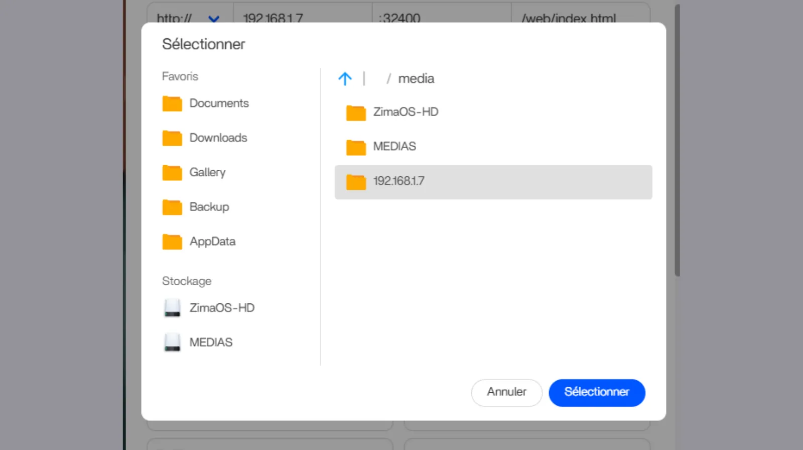 Indiquez le chemin du dossier ou Volume où sont stockés vos sous dossiers médias. Sur la colonne de gauche vous pouvez aussi sélectionner la source avec l’icône dossier.
