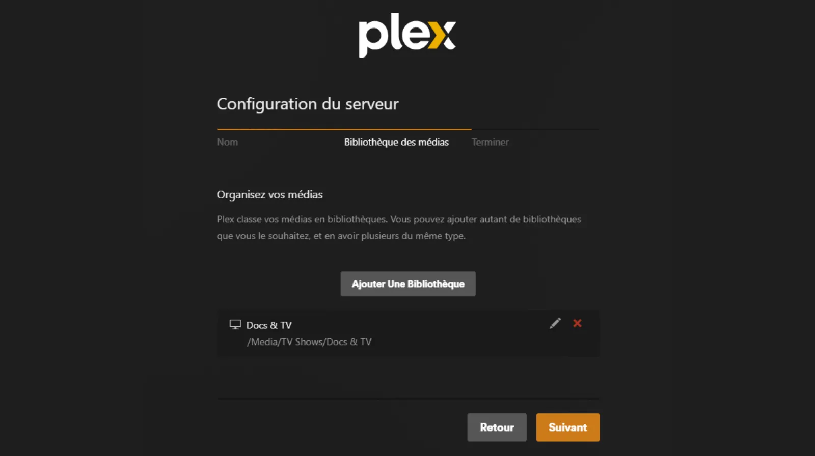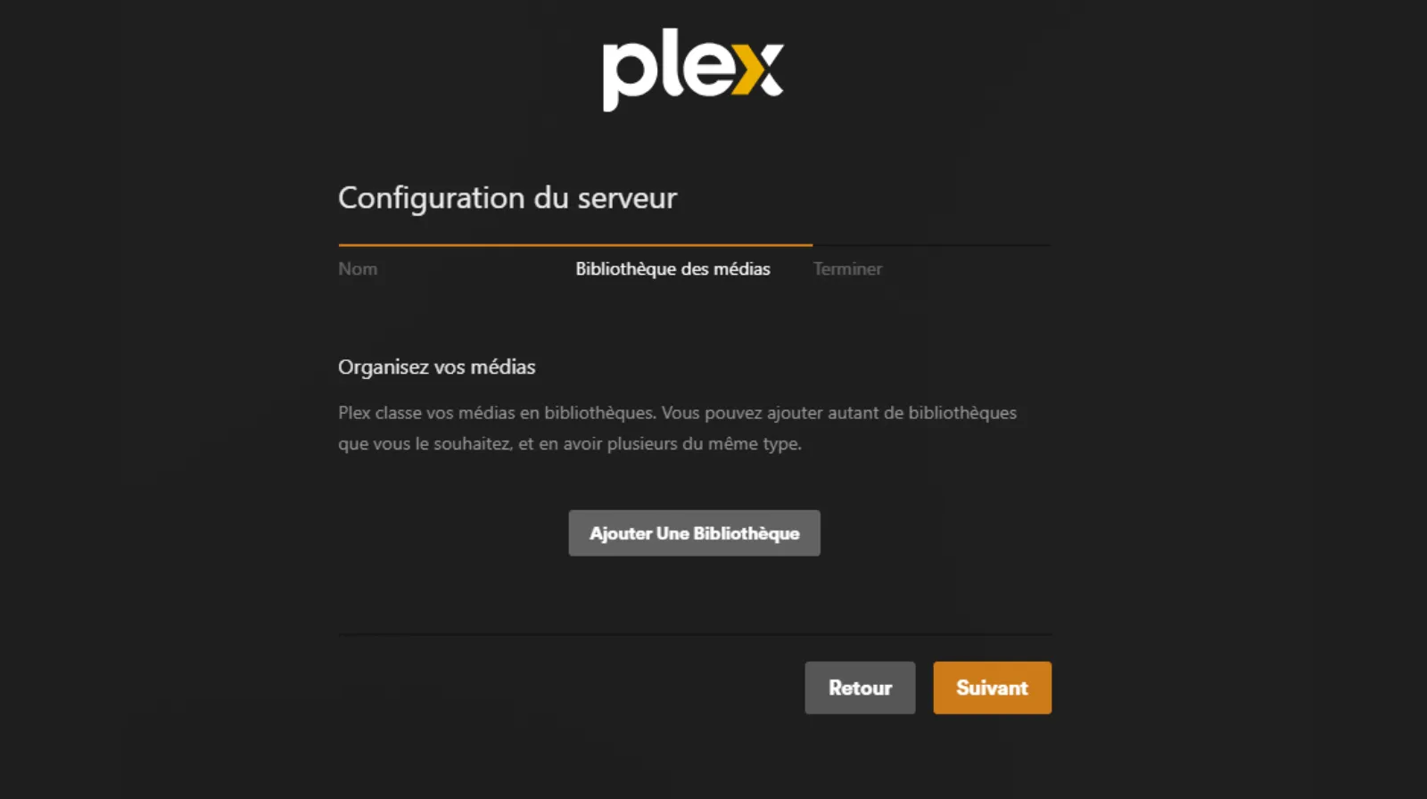 Donner un nom à votre nouveau serveur Plex. Puis Suivant