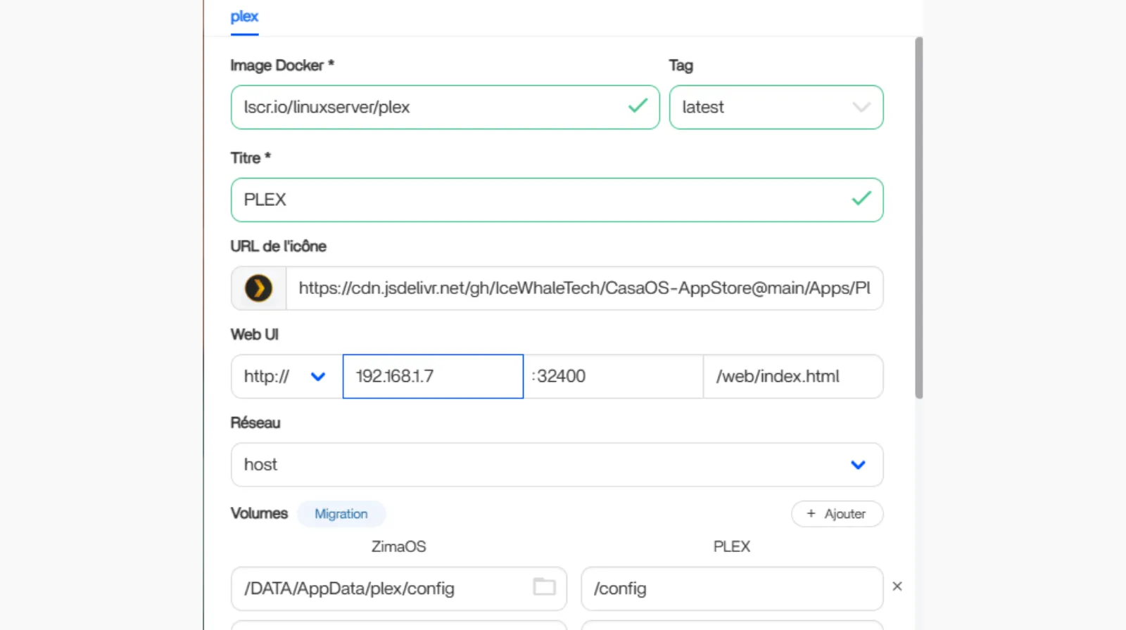 L’installation de Plex Serveur en Docker sur votre ZimaOS inclue la configuration pour un transcodage matériel.