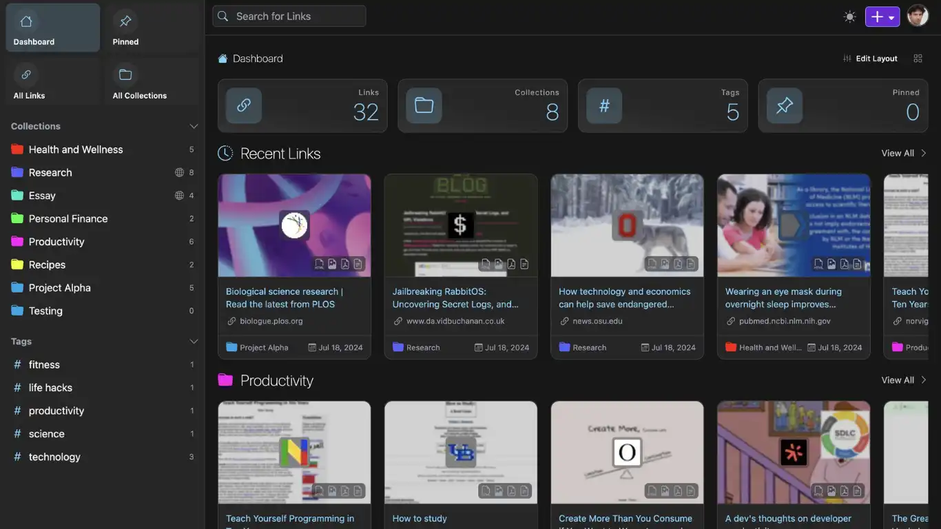 - Intégrations : Synchronisation via Floccus, importation depuis Pocket ou Instapaper, et support de l’IA pour l’étiquetage automatique.