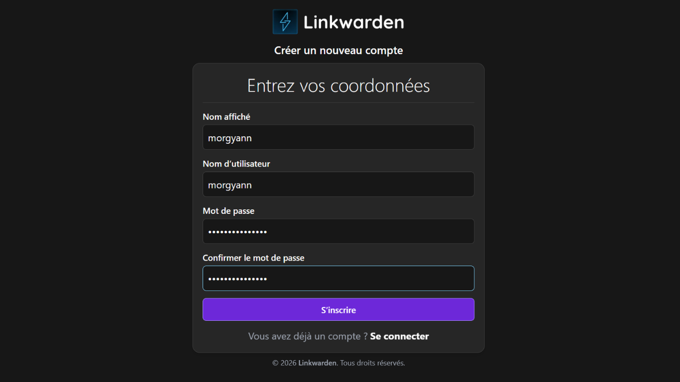 Remplissez le paneau d'inscription et, validez avec le bouton S'inscrire