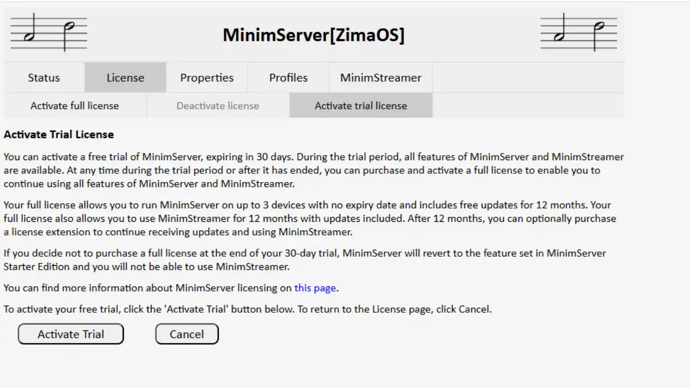 Une version gratuite est disponible, mais une licence payante (30 jours d'essai gratuit) débloque des fonctionnalités avancées comme le transcodage en temps réel, la convolution audio via MinimStreamer, et une meilleure intégration avec des applications de contrôle comme Hi-Fi CastBubbleUPnP ou Lumin.