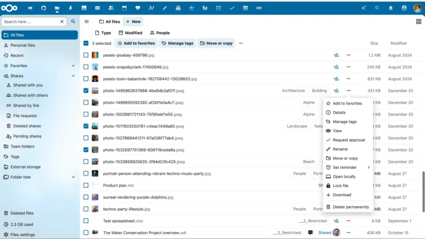 Nextcloud regroupe un grand nombre de possibilités avec son catalogue d'applications. Il demeure, à ce jour, souvent plébiscité par les auto hébergeurs pour ses multiples fonctionnalités.