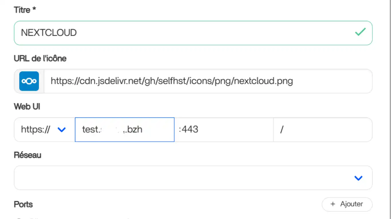 - NEXTCLOUD_ADMIN_PASSWORD = votre mot de passe de connexion (complexité moyenne au minimum)