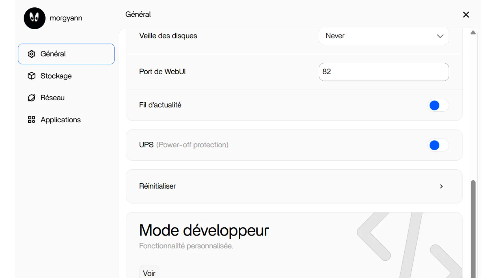 1. Ouvrir le panneau de configuration à Settings -> Général -> Activer UPS