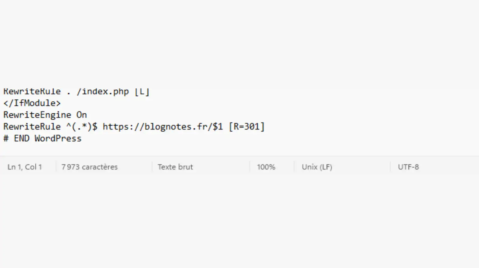 Vous incrivez en fin de fichier - avant #End WordPress et mofifiez l'adresse nom du nouveau site - le script qui suit.
