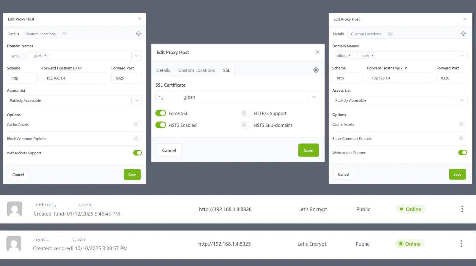 Configurer les ports locaux qui seront dédiés respectivement à l’application Sync-In et à l'application associée OnlyOffice avec le Proxy Inversé. Les ports utilisés pour cet article seront définis à 8325 pour Sync-In et à 8326 pour OnlyOffice à titre d’exemple, vous pouvez donc les personnaliser à votre convenance comme, 8321, 8822, 8983 … dans la mesure où ceux-ci sont disponibles.