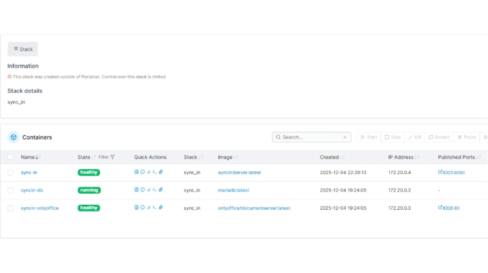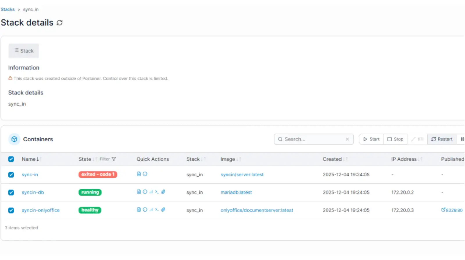 Lors de différents tests d’installation, il est apparu, pour une de mes machines en ZimaOS, que le container sync-in ne pouvait se connecter au yaml de configuration – en indication du journal du container.