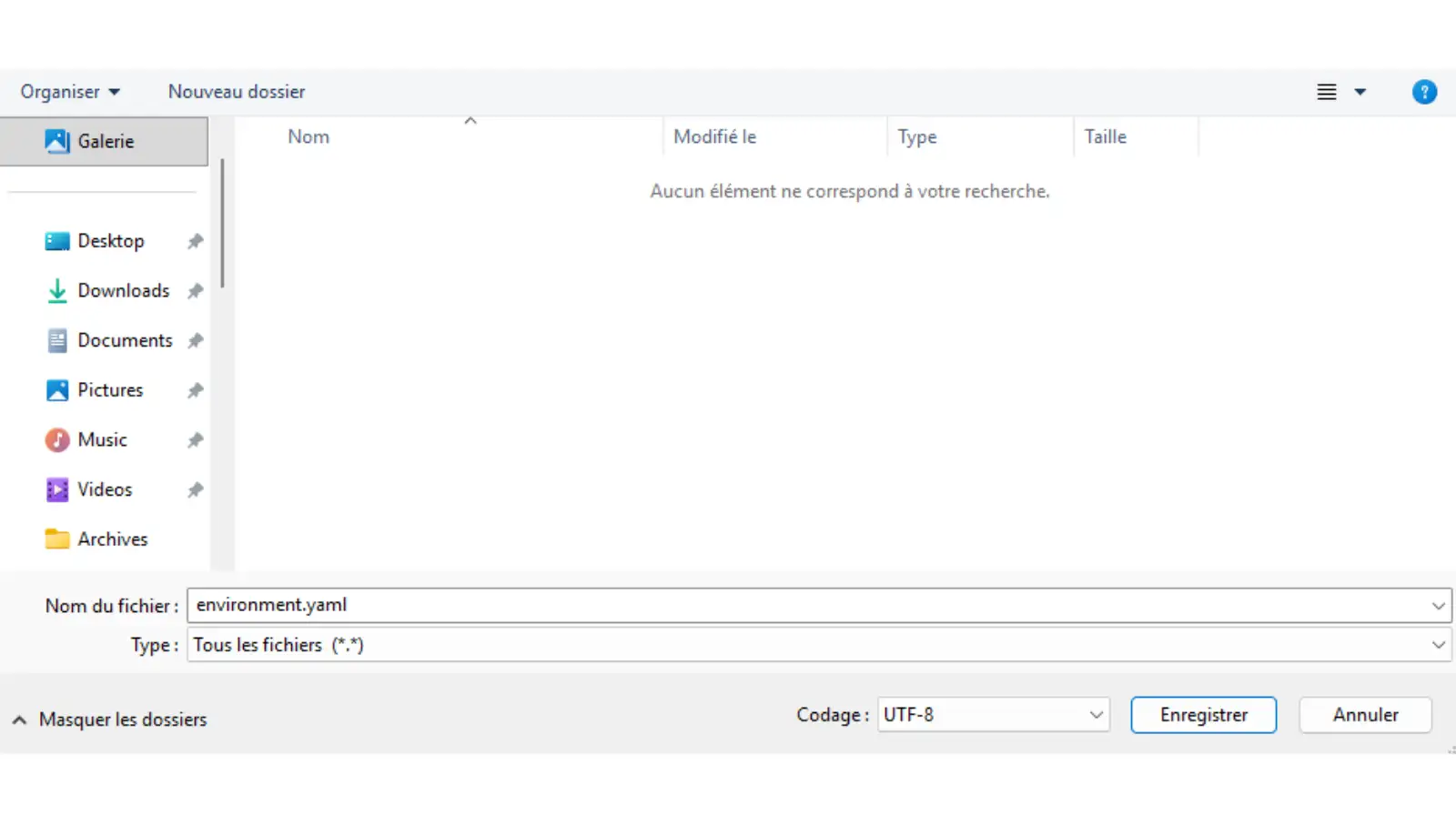 Nommez et enregistrez ce fichier -> environment.yaml -> sur votre PC.