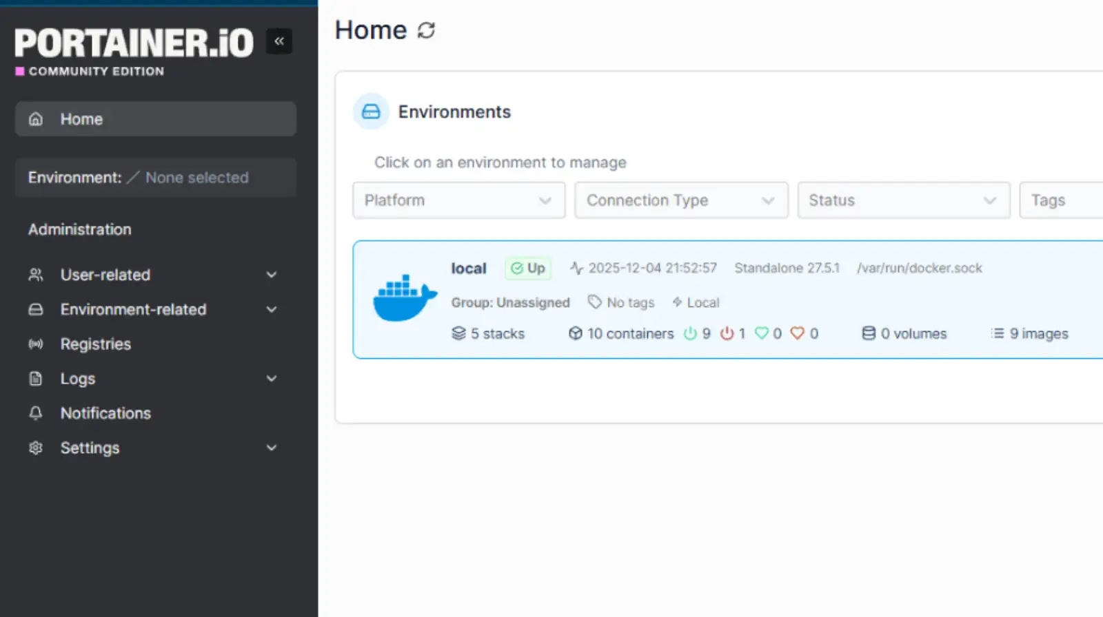 Installer Portainer pour piloter plus facilement l'installation de cette application.