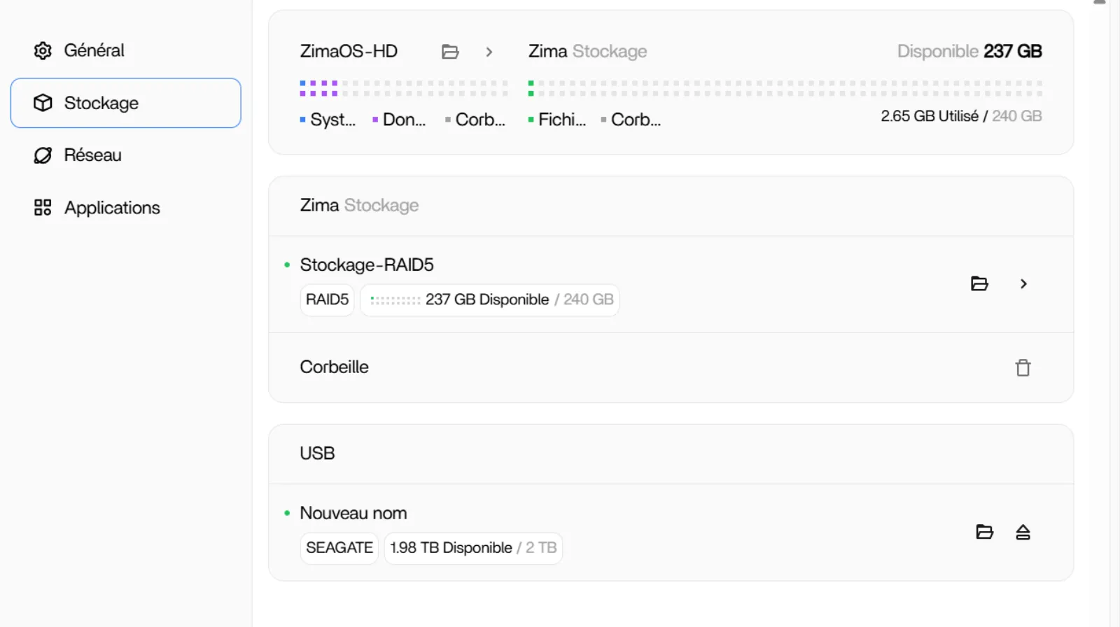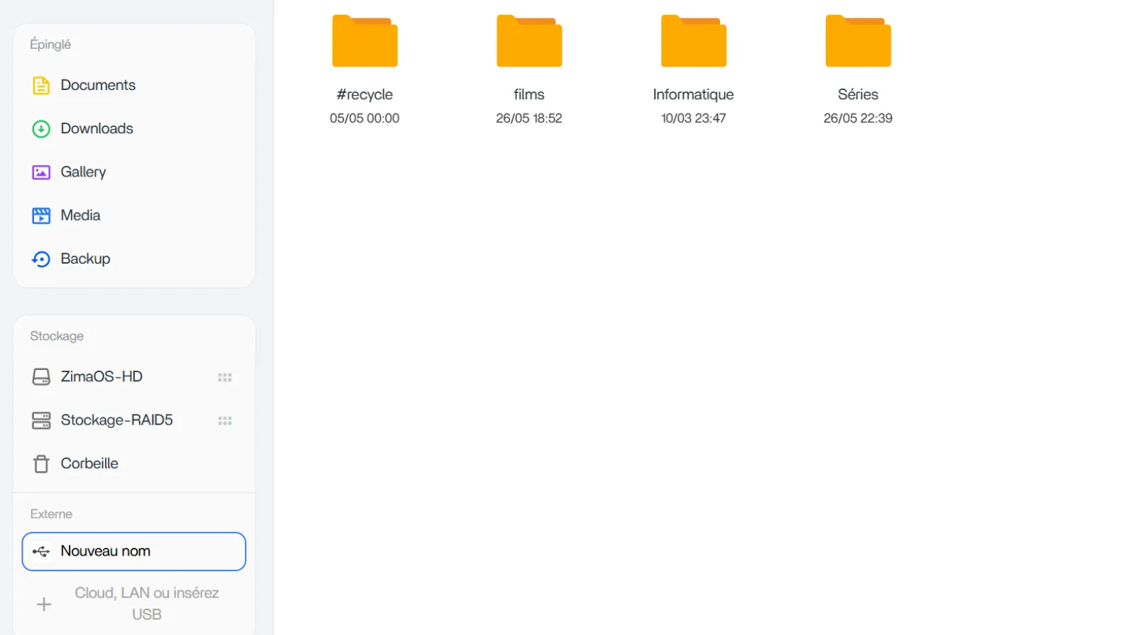 Pour étendre votre stockage, vous pouvez simplement adjoindre à votre machine ZimaOS, un périphérique de stockage en USB.
